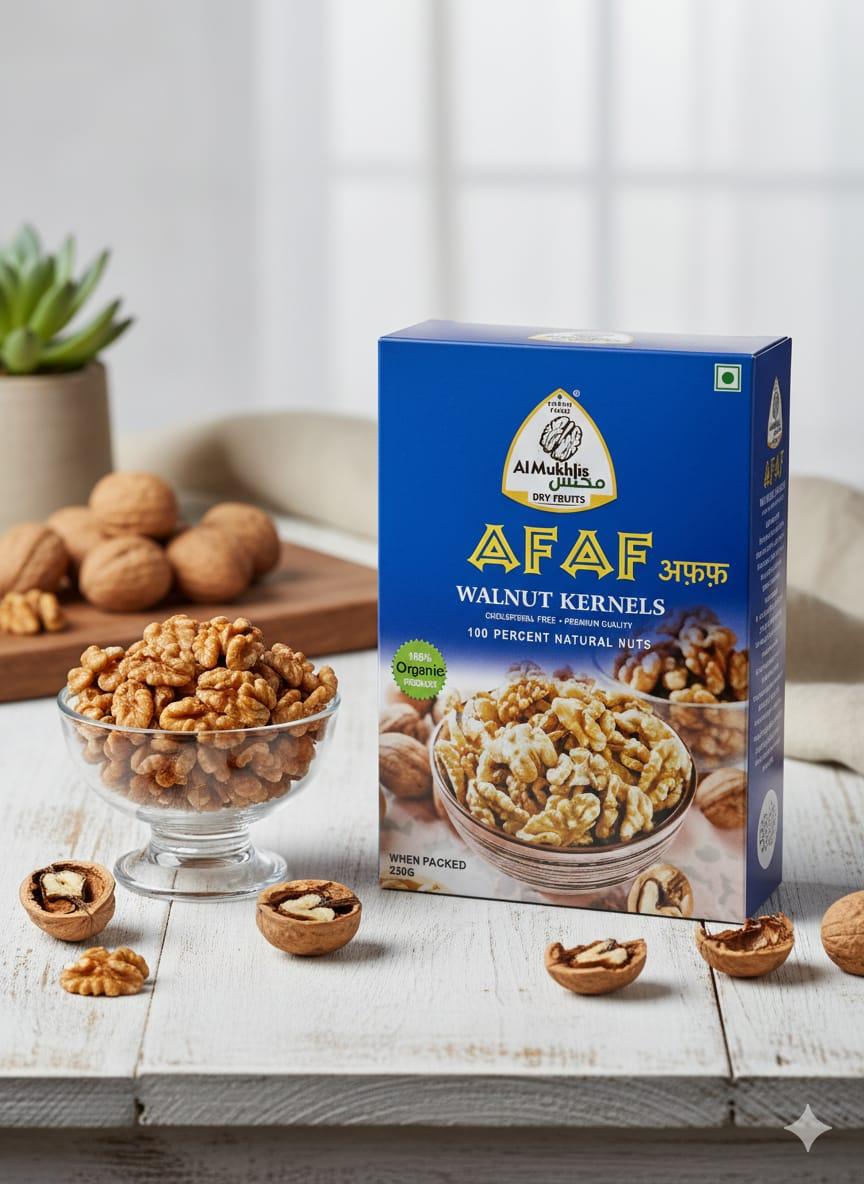 Almukhlis Afaf Walnut Kernels Premium walnut kernels known for their rich flavor, crisp texture, and natural freshness. Afaf Walnut Kernels are packed with omega-3, antioxidants, and essential nutrients – ideal for healthy snacking, baking, and daily wellness. Pure, wholesome, and naturally delicious.